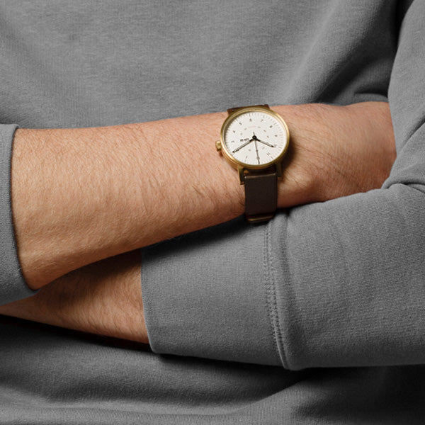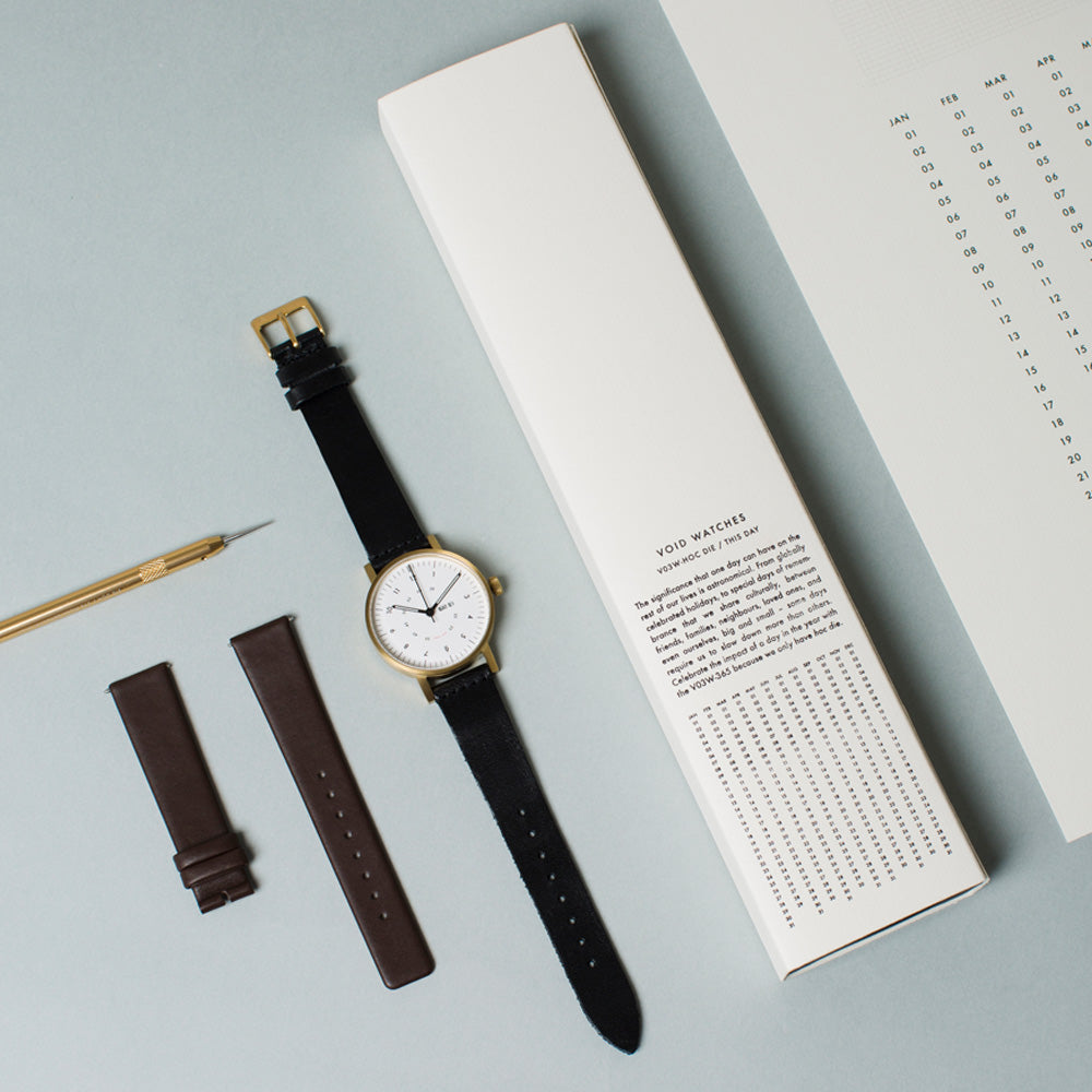 The V03W-365 comes with a black vegetable tanned strap made from premium Swedish leather and an extra dark brown strap for some variation. All beautifully presented in a custom gift box.
