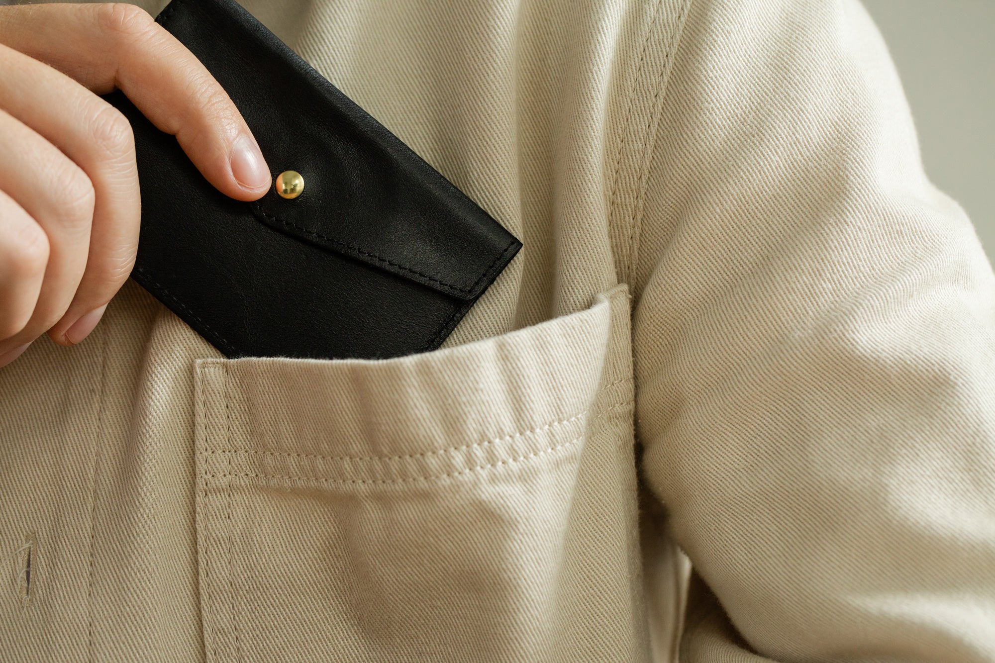Thin and understated premium leather card holder. Good for organising cards and paper bills. Even better for those who carry light.